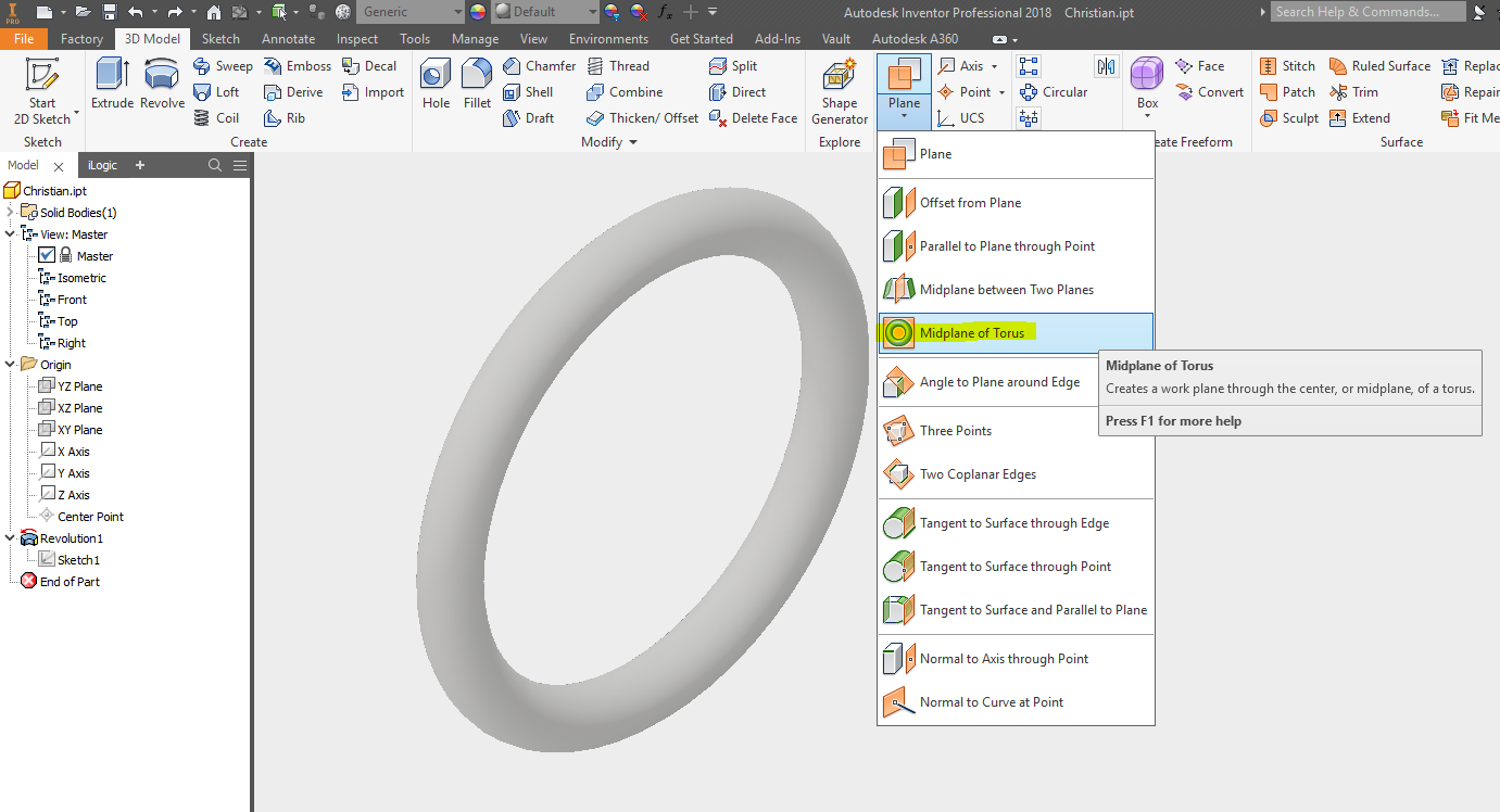 Impossibile creare un piano dello schizzo su un cerchio o una superficie di O-Ring di rivoluzione in Inventor | Inventor 2018 | Autodesk Knowledge Network
